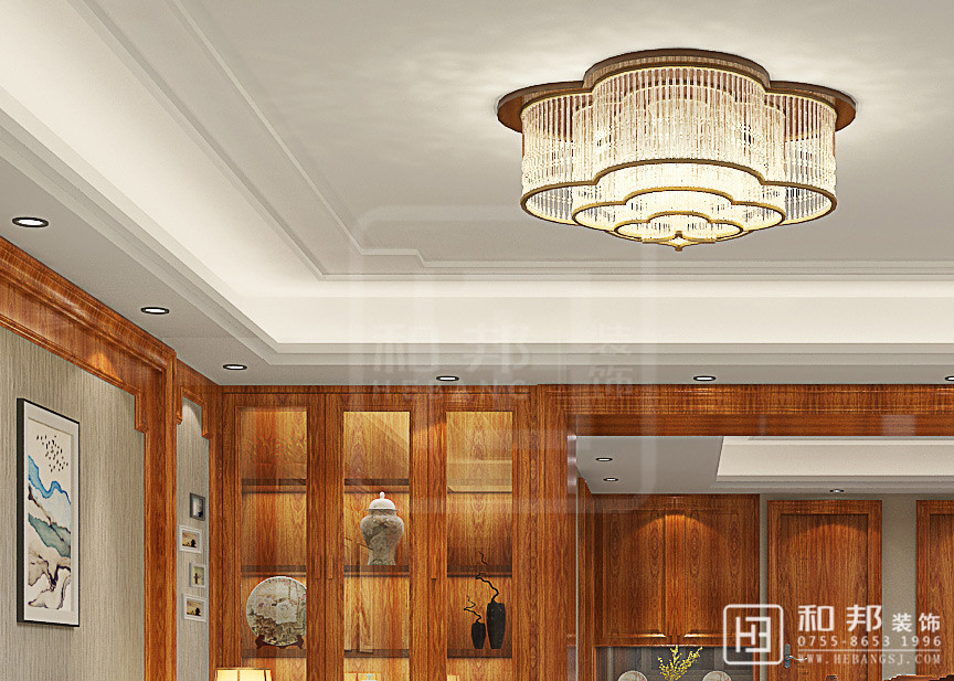 本方案整體以中式風格為基調,點、線、面的完美結合,同時,在某些地方配上一些其他色彩的點綴,使人感覺到整潔舒適,美觀大方而不失檔次, 不會讓人感到單調、簡單。