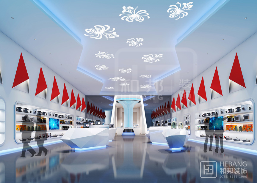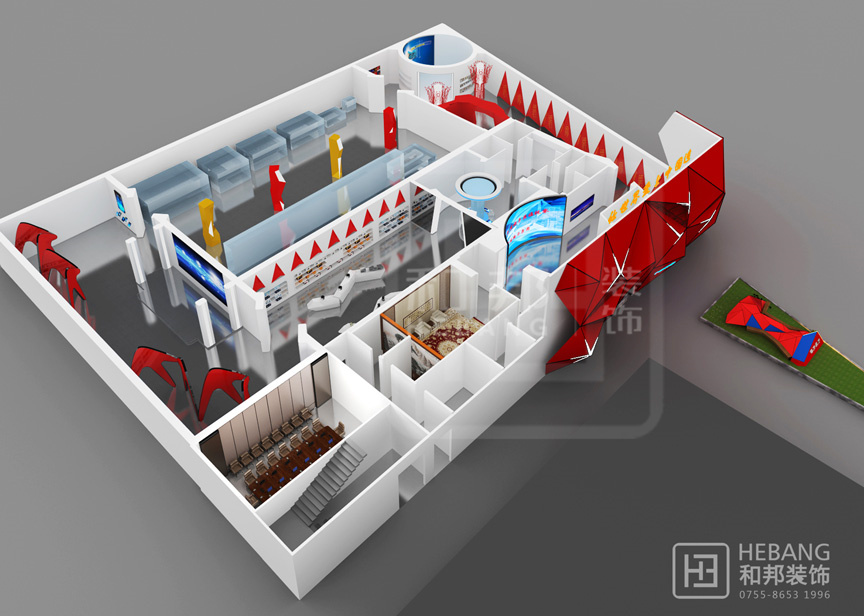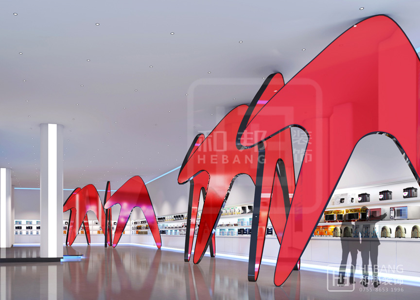 | 設(shè)計說明 | 格力集團展廳主體顏色為“中國紅”,整個設(shè)計現(xiàn)代感十足。不管是門頭設(shè)計采用的立體設(shè)計還是內(nèi)部的各種裝飾元素?zé)o不富有設(shè)計感。之外,整個展廳的科技感也是十分強的。 | ||||